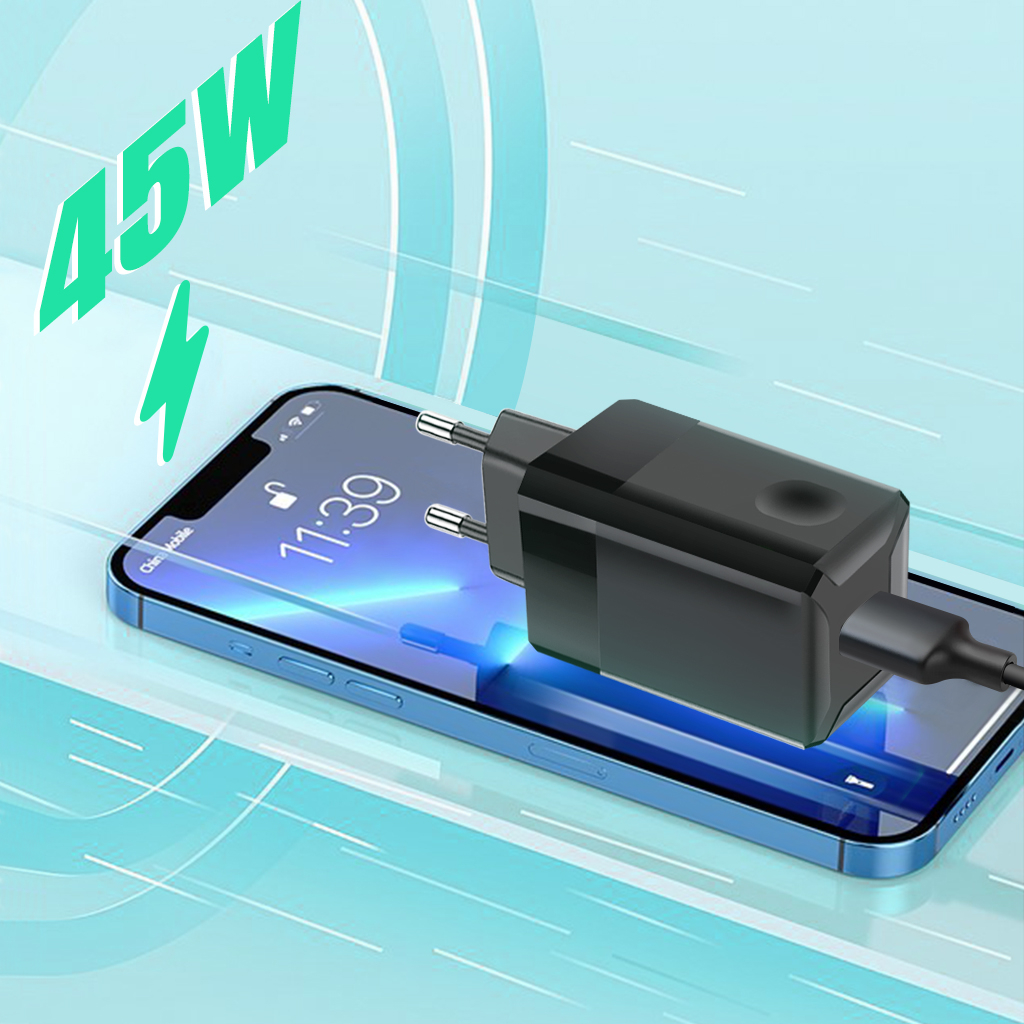 AMINO 45W Kepala Charger USB QC 3.0 Turbo Fast Charger / Travel Adaptor / Super Fast Charging Adaptor TYPE C TO USB / US