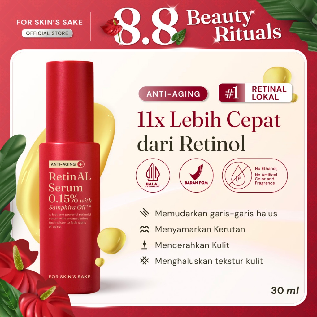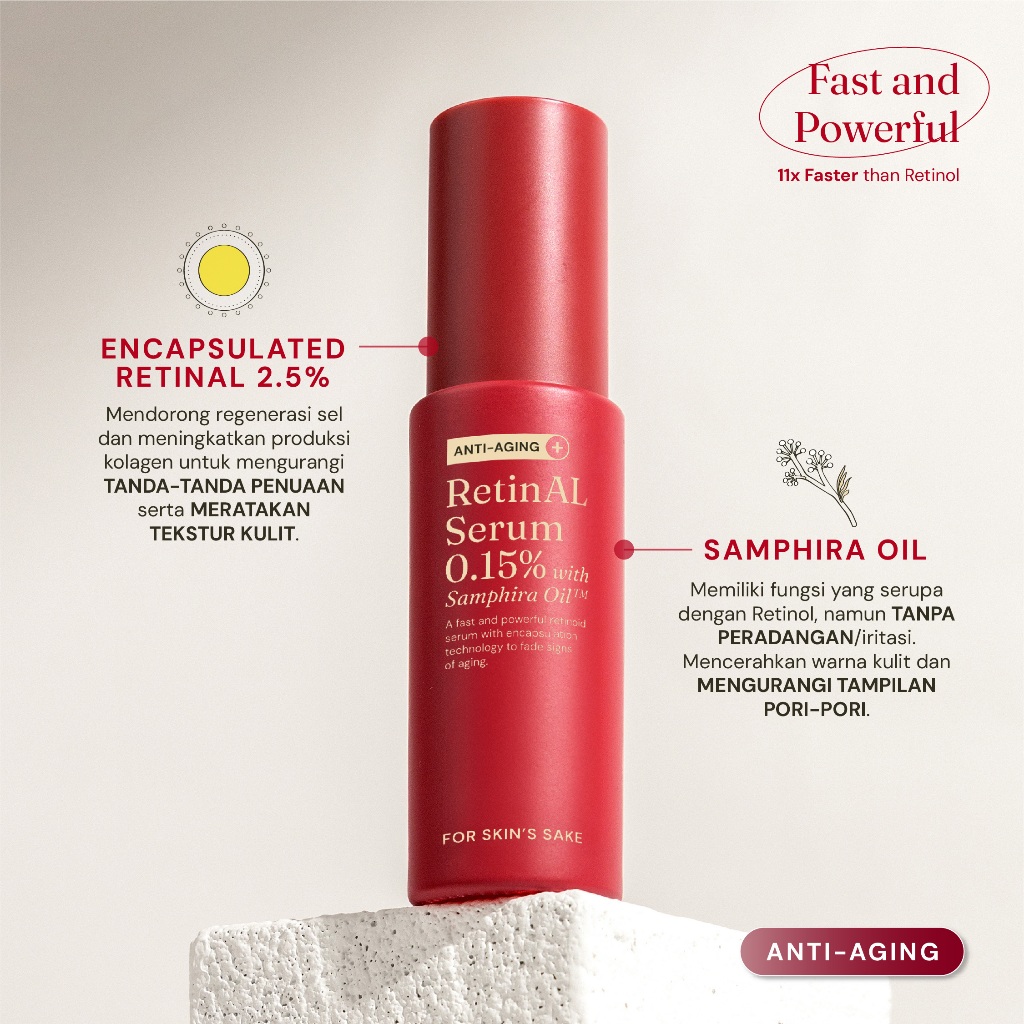 For Skin's Sake FSS RetinAL Serum 0.15 PERSEN Serum Retinoid Memudarkan Garis Halus Memudarkan Kerutan Menghaluskan Tekstur Kulit with Samphira Oil