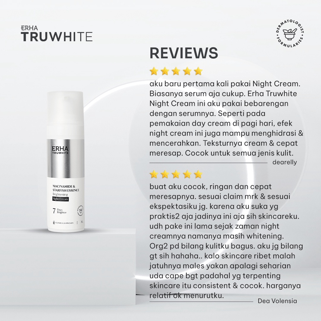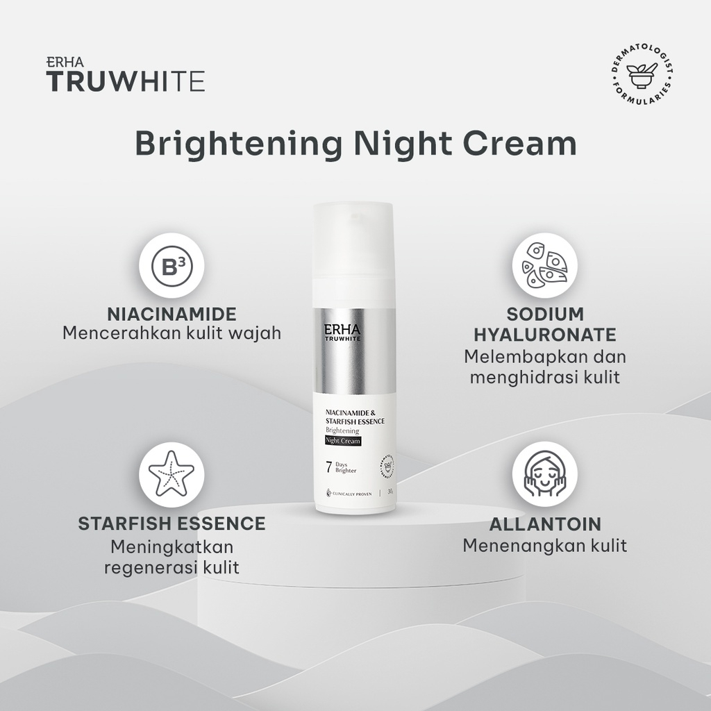ERHA Truwhite Brightening Night Cream 30g with Niacinamide & Starfish Essence - Moisturizer / Pelembap Wajah Malam Hari untuk Regenerasi dan Mencerahkan Kulit