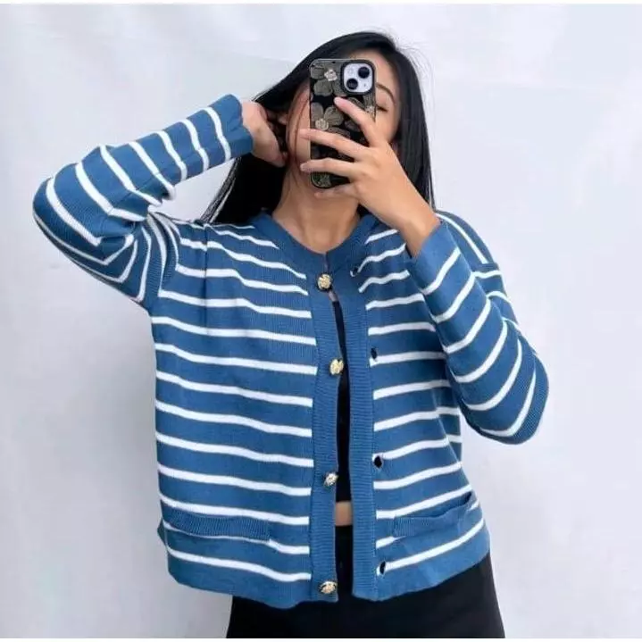 Cardigan Rajut Wanita Korean Oversize Garis-Garis