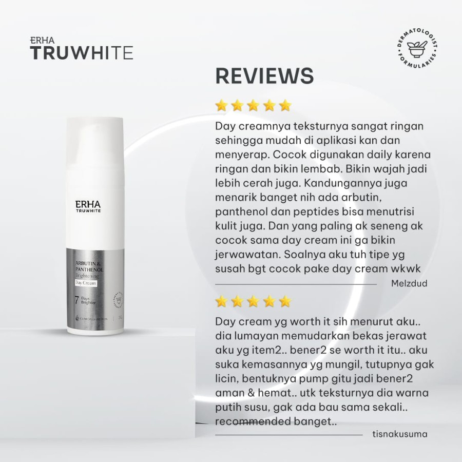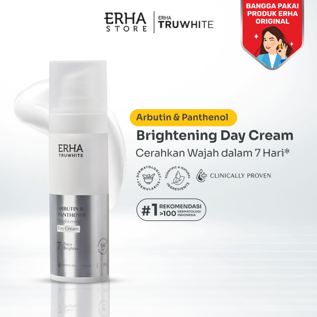 ERHA Truwhite Brightening Day Cream 30g with Niacinamide, Arbutin & Panthenol - Moisturizer / Pelembap dengan UV Filter dan Instant Tone Up Effect Wajah Lebih Cerah Merata