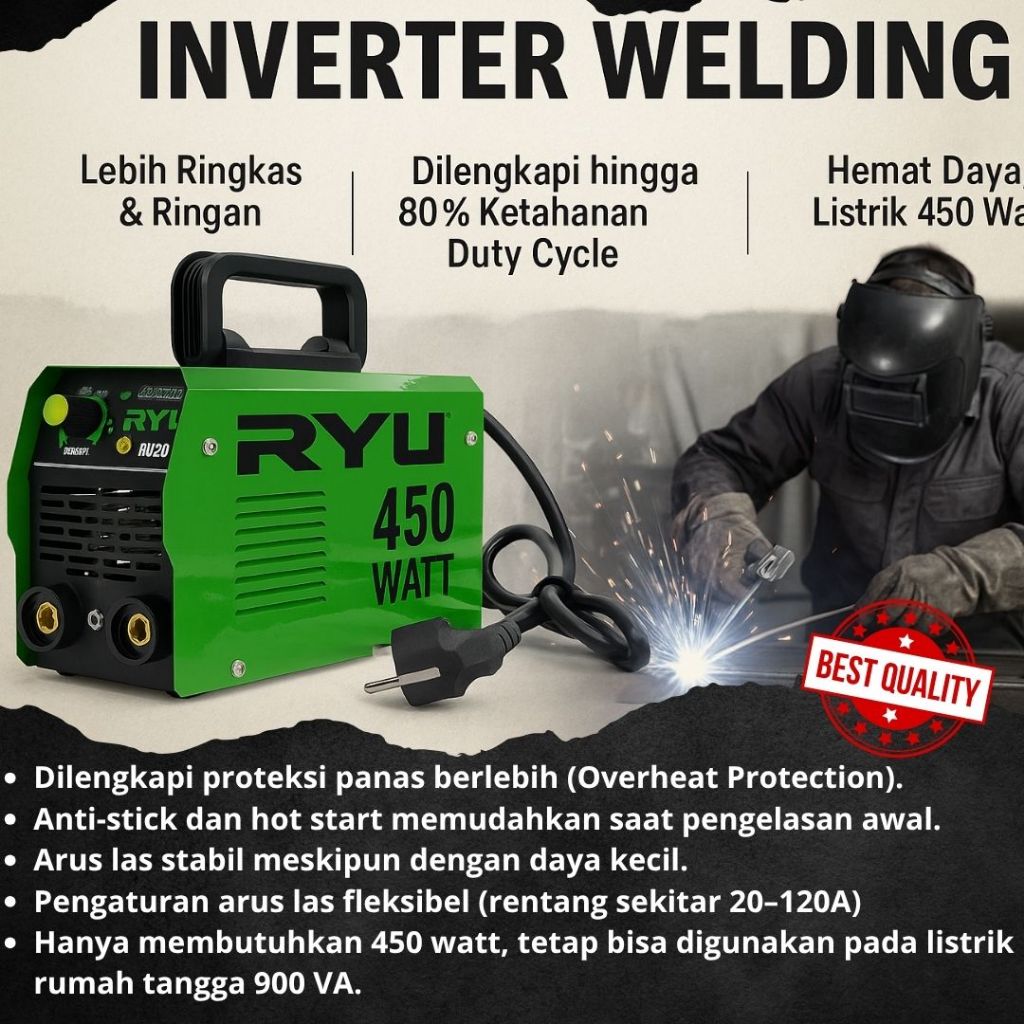 Mesin Las 900 450 Watt Ryu Inverter Mma 120 Igbt Las Mig Tanpa Gas Listrik Argon Daiden Lakoni Izumi Mini Rhino 450 Watt