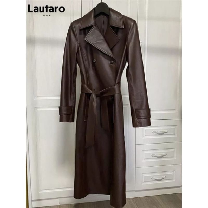 Long Coat Wanita Caramel / Jaket Jubah / Semi Kulit Wanita Vintage
