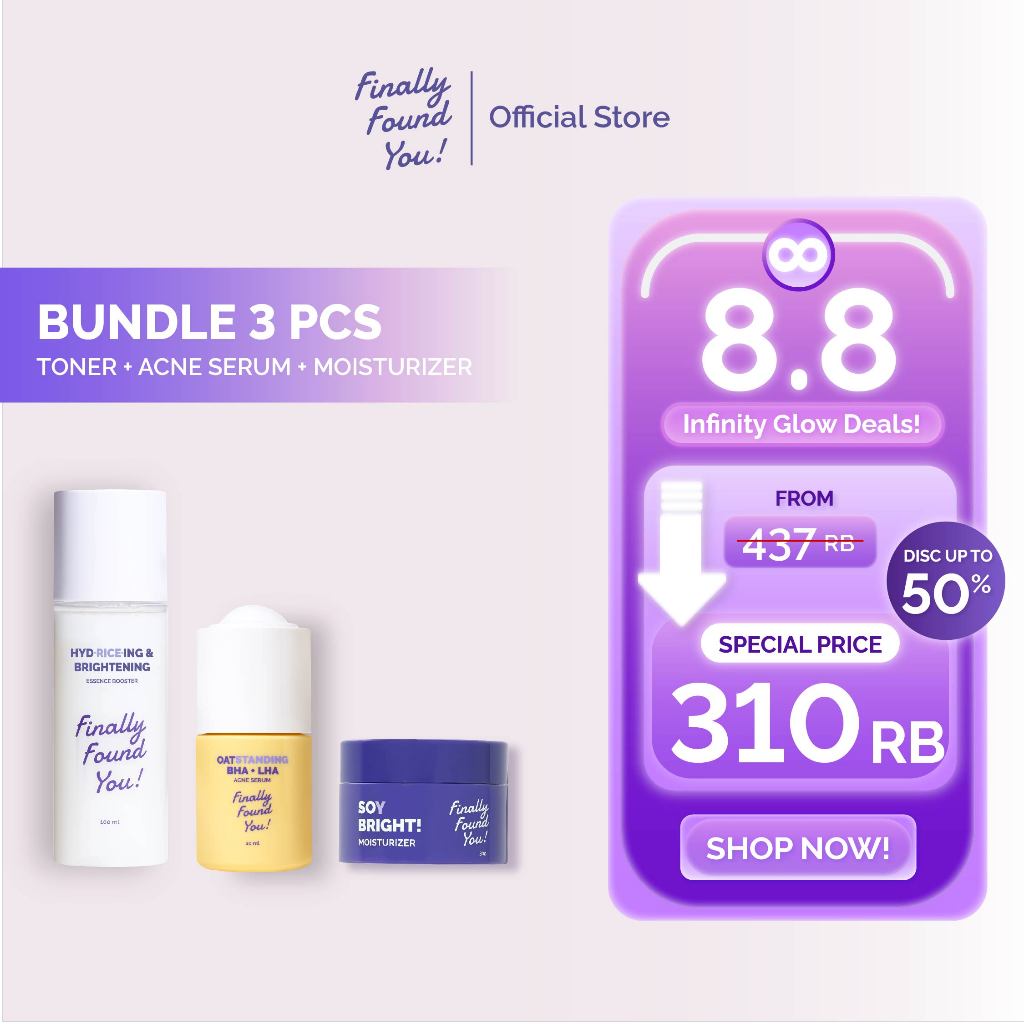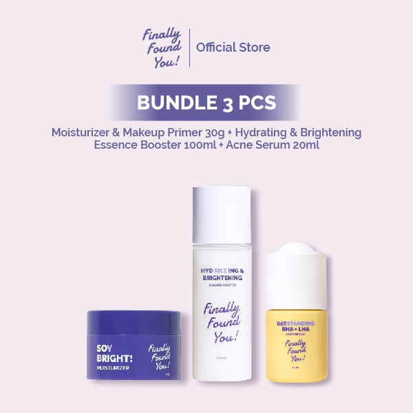Finally Found You ACNE TREATMENT 3 PCS: Soy Bright Moisturizer + HYDRICEING & BRIGHTENING Essence Booster & OATSTANDING BHA + LHA Acne Serum