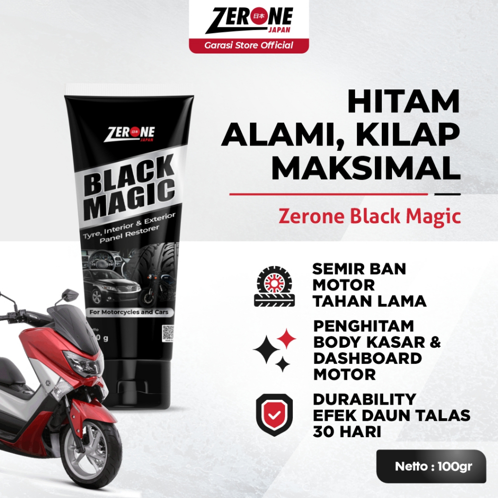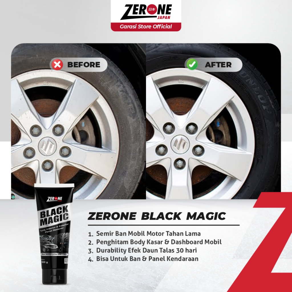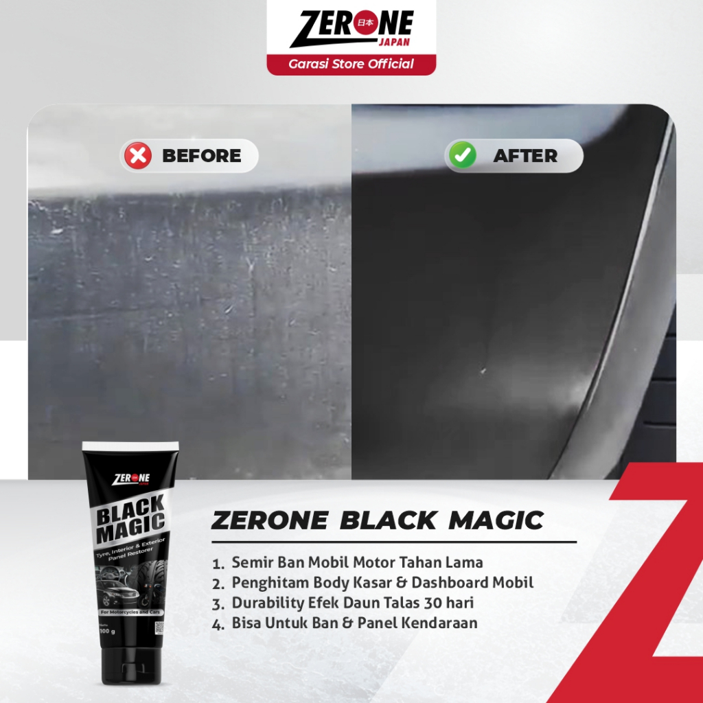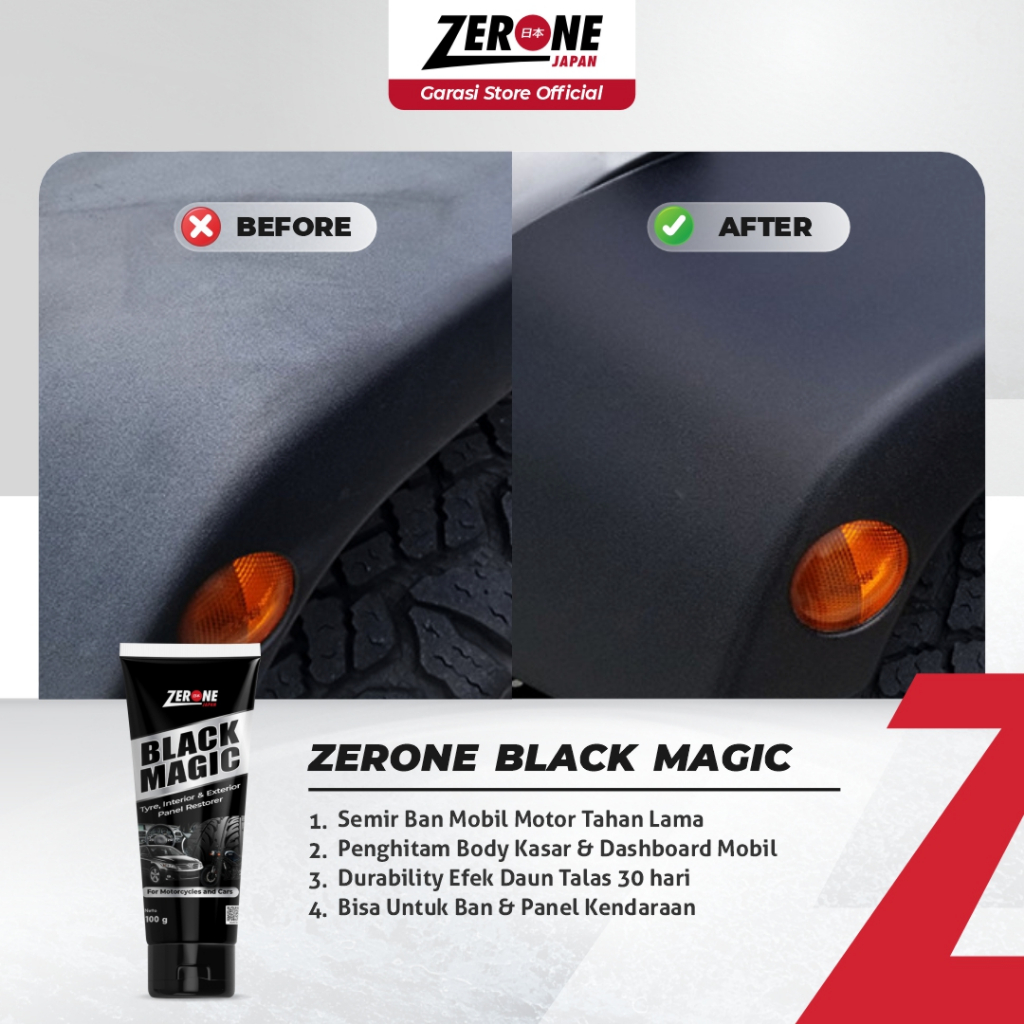 Zerone Japan Black Magic Penghitam Body Kasar Panel Dashboard Kilap Semir Ban Mobil Motor Tahan Lama