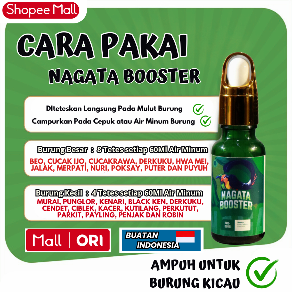 NAGATA BOOSTER PAKET 5 BOTOL - Vitamin Burung Terbaik Atasi Cabul & Mabung - REKOMENDASI TERBAIK !!!