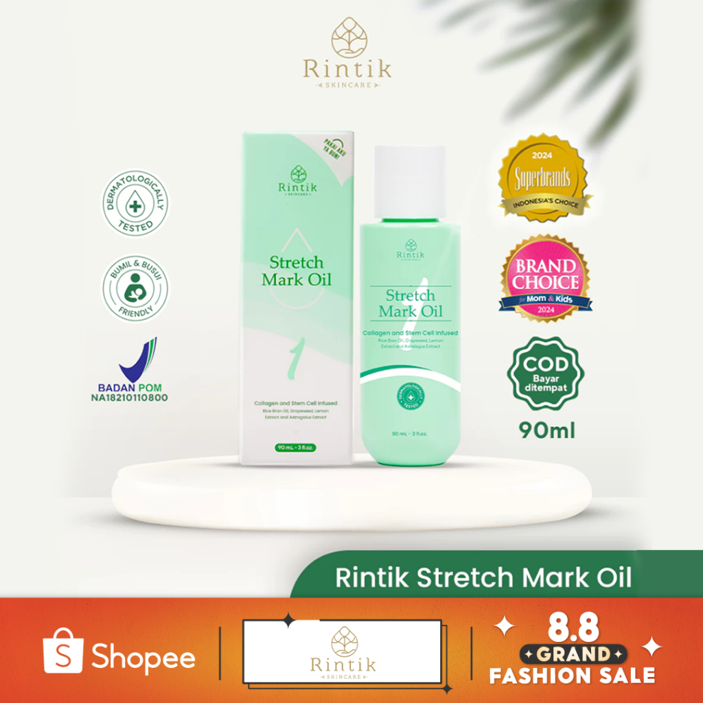Rintik Skincare Stretchmark Oil - Terbukti Ampuh Memudarkan Stretch Mark /Selulit/Bekas Luka/Bekas luka eksim 90ml BPOM Dermatologist Tested