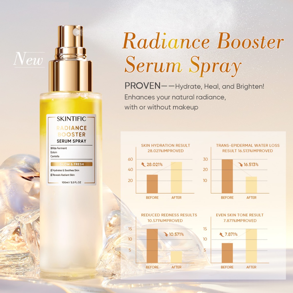 [Official Outlets] SKINTIFIC - Instant Glowing Serum Spray Radiance Booster Essense Toner Oil Make Up Primer Setting Spray Dry/Oily Skin
