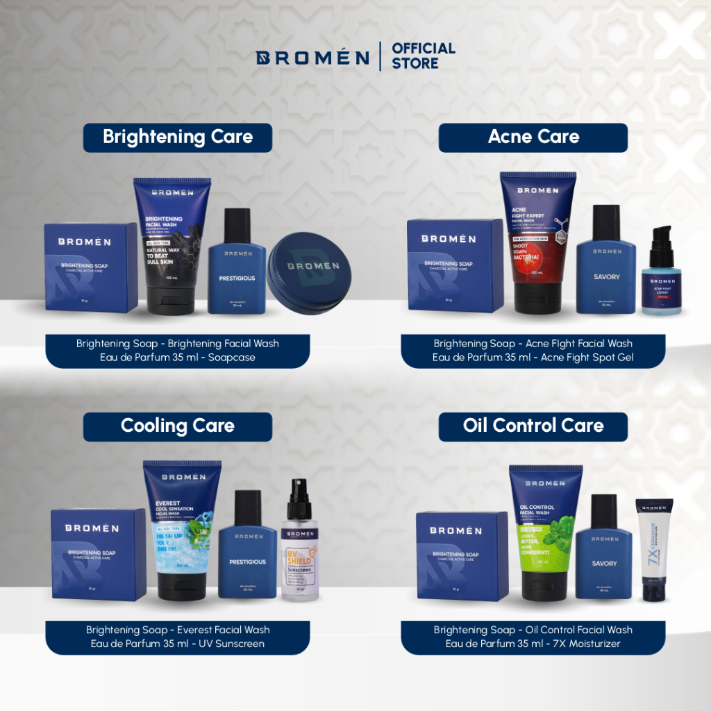 BROMEN - Personal Care | Paket Bundling 4 Series (Bright Soap - Facial Wash - Acne Spot Gel - Moisturizer/ Sunscreen)