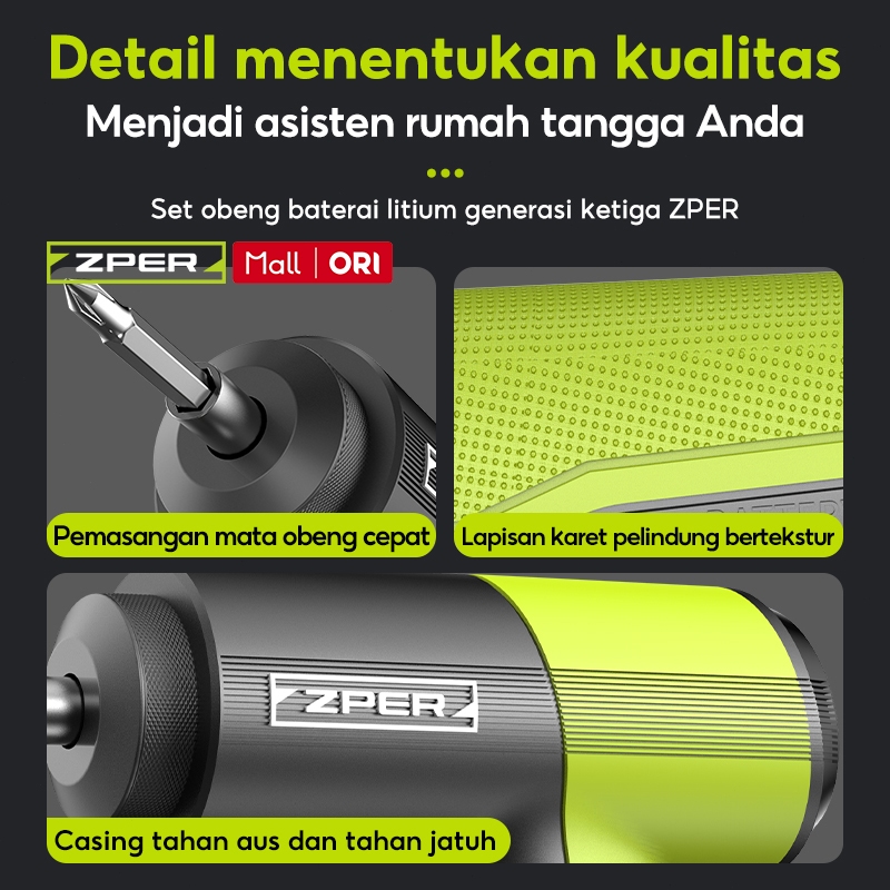ZPER Obeng Set Lengkap Toolkit Tool Box Mesin Bor Listrik Baterai Obeng Elektrik Set Komplit Mini Cordless Portable