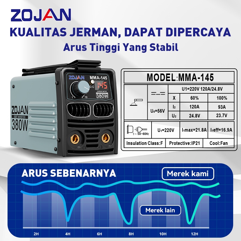 Zojan Mesin Las 900 450 Watt Las Mig Tanpa Gas Listrik Argon Daiden Lakoni Izumi Mini Rhino 450 Watt 380w Mma-145