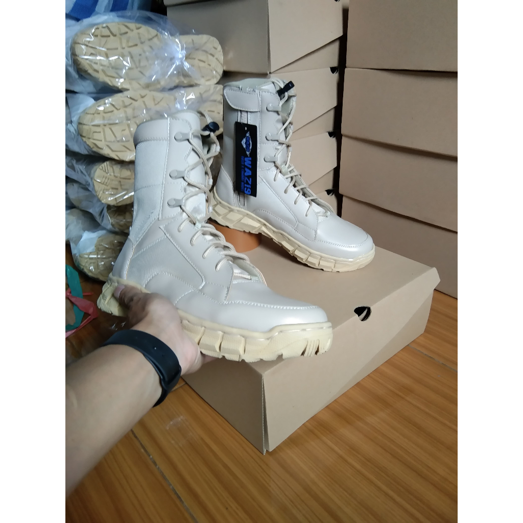 Sepatu PDL PNS Kemhan Krem Kulit Kanvas
