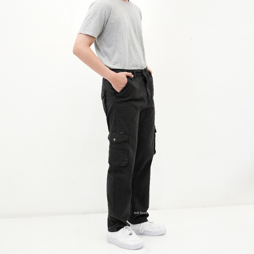 VINARRO - CELANA CARGO PRIA TEBAL bahan semi jeans CELANA kimpol tebal adem GUNUNG pria PDL DAN HALUS Dewasa Katun Hitam Distro Cowok