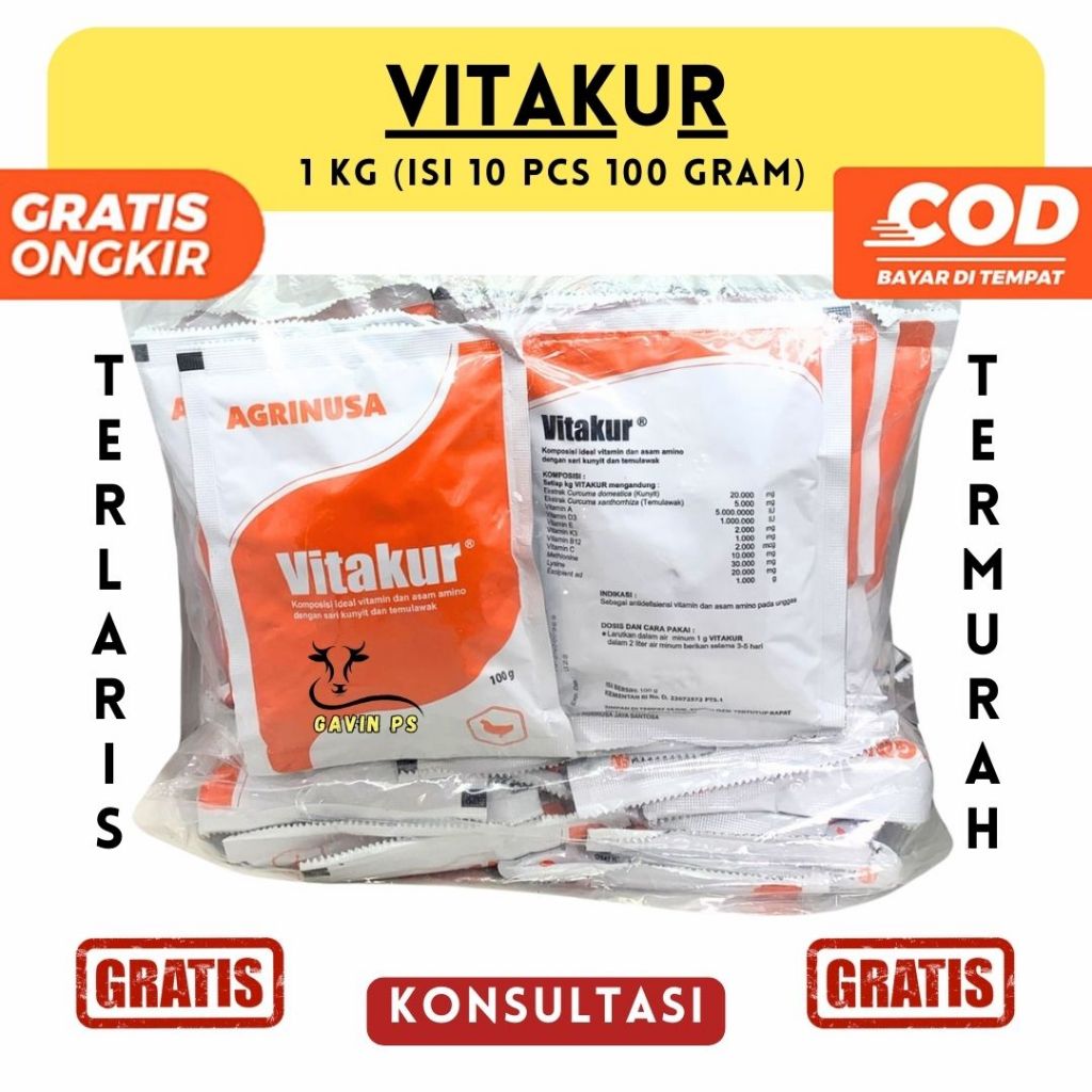 VITAKUR 100 gram 1 KG (10 PCS) | MultivitaminHerbal KunyitTemulawak Penambah Nafsu Makan & BB Ayam