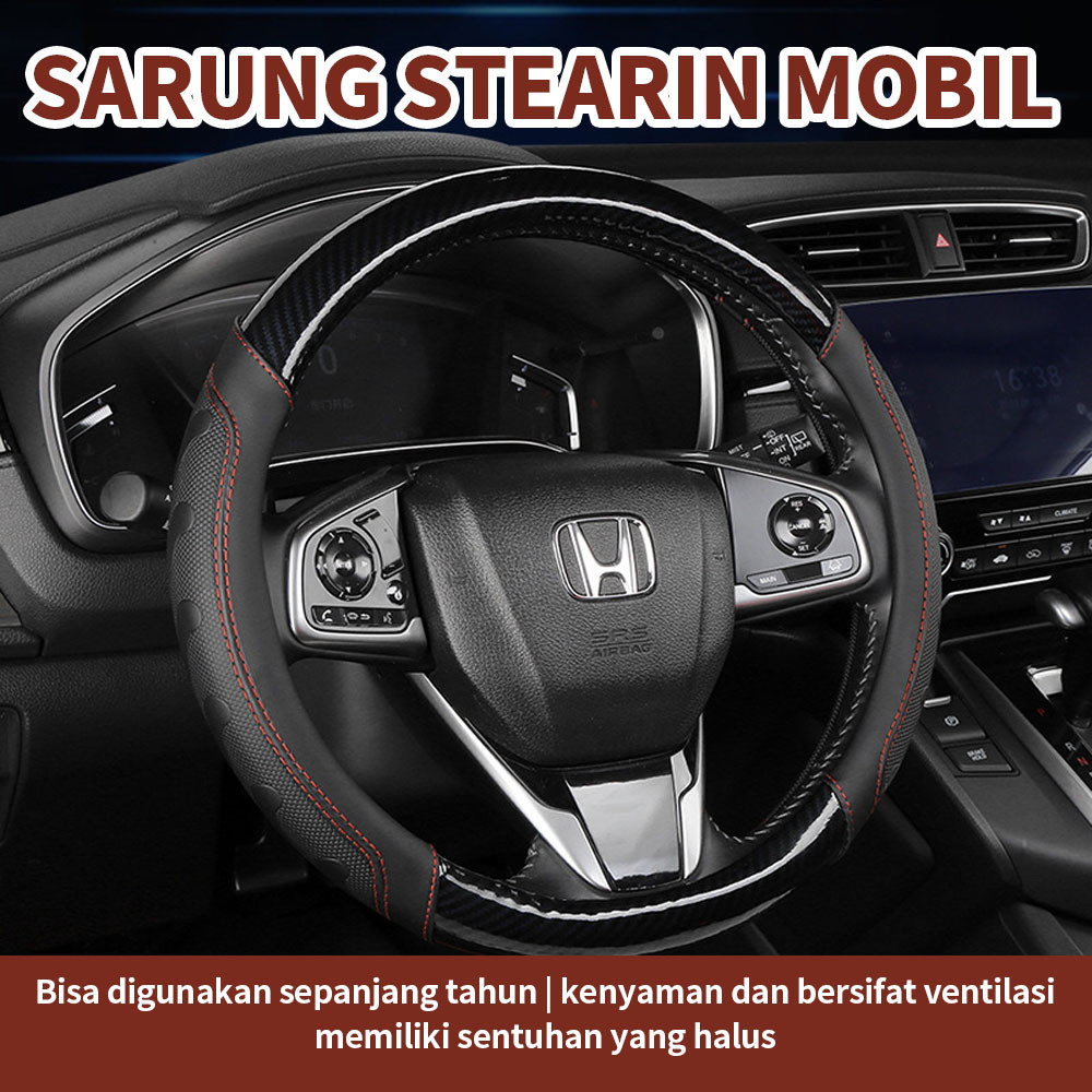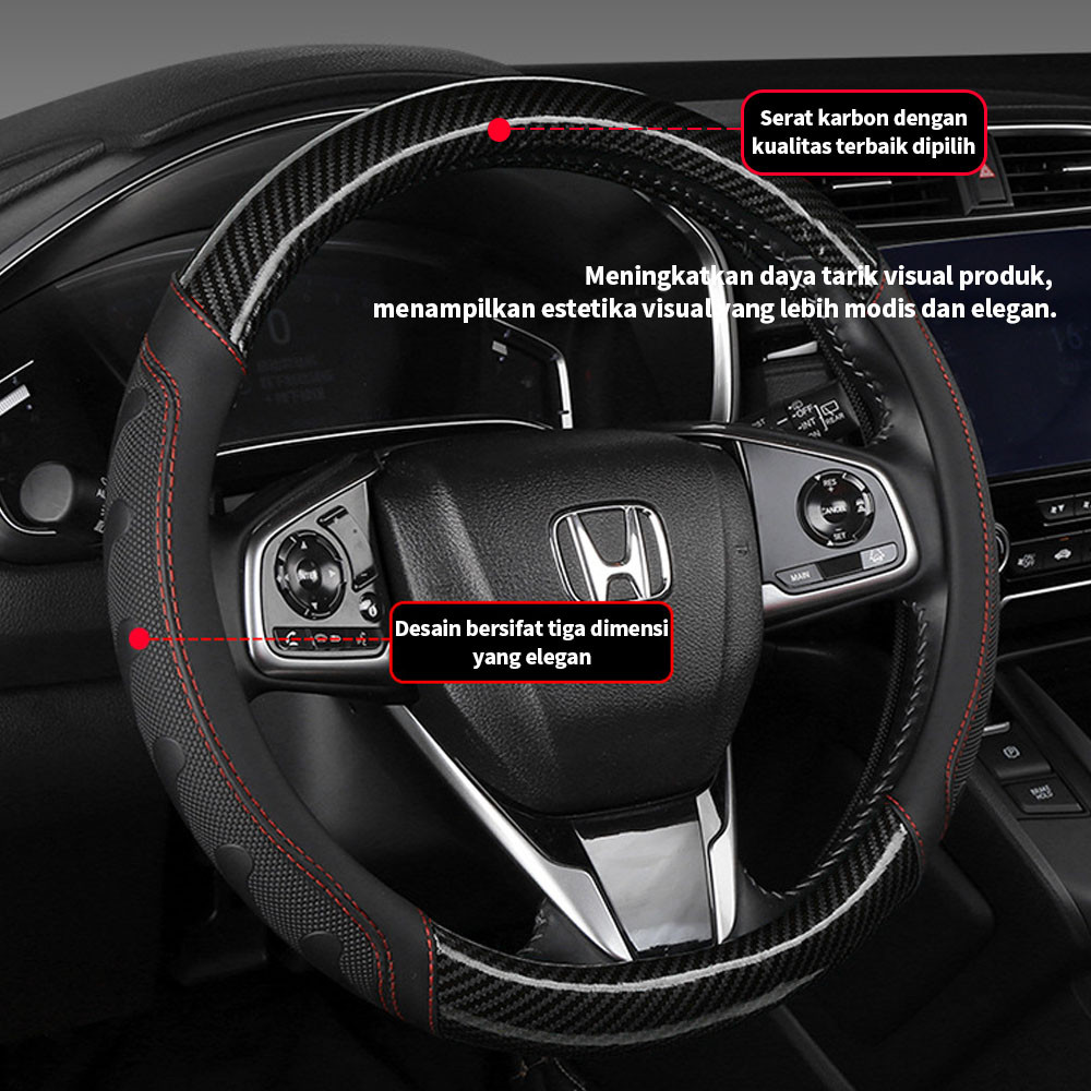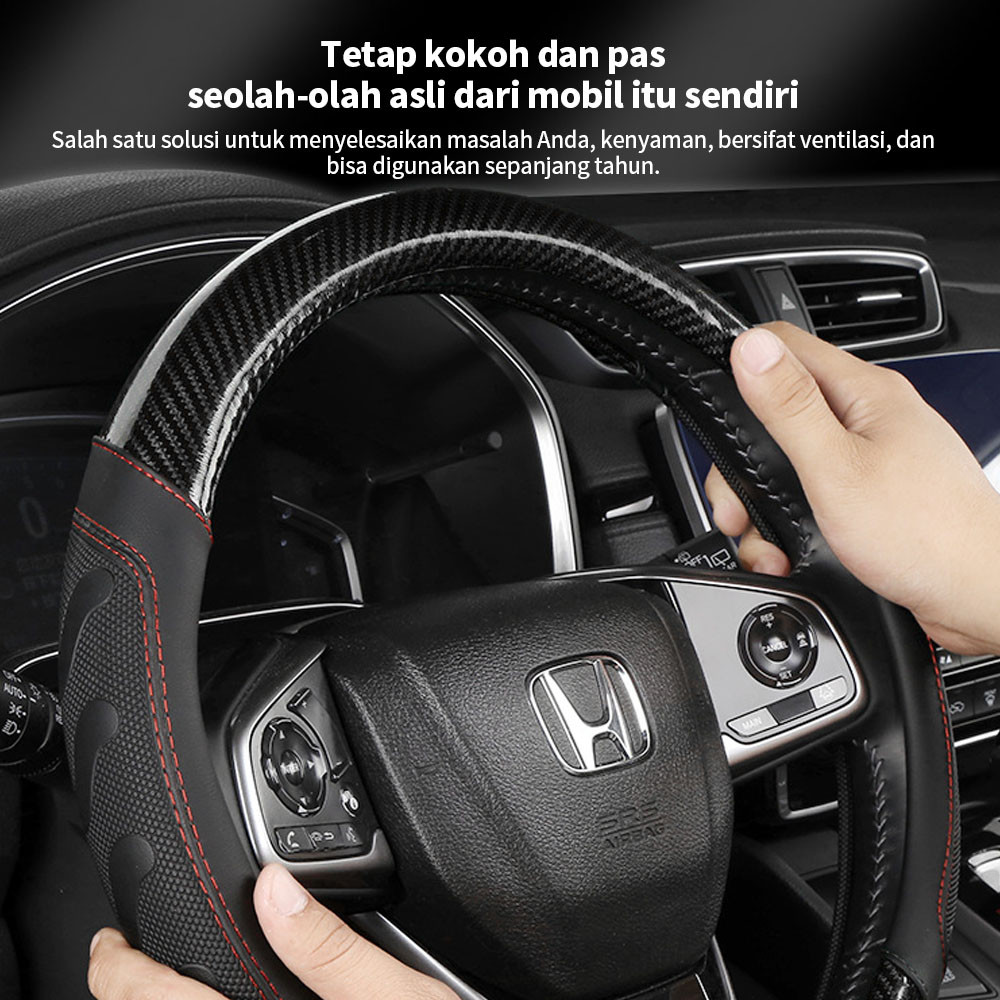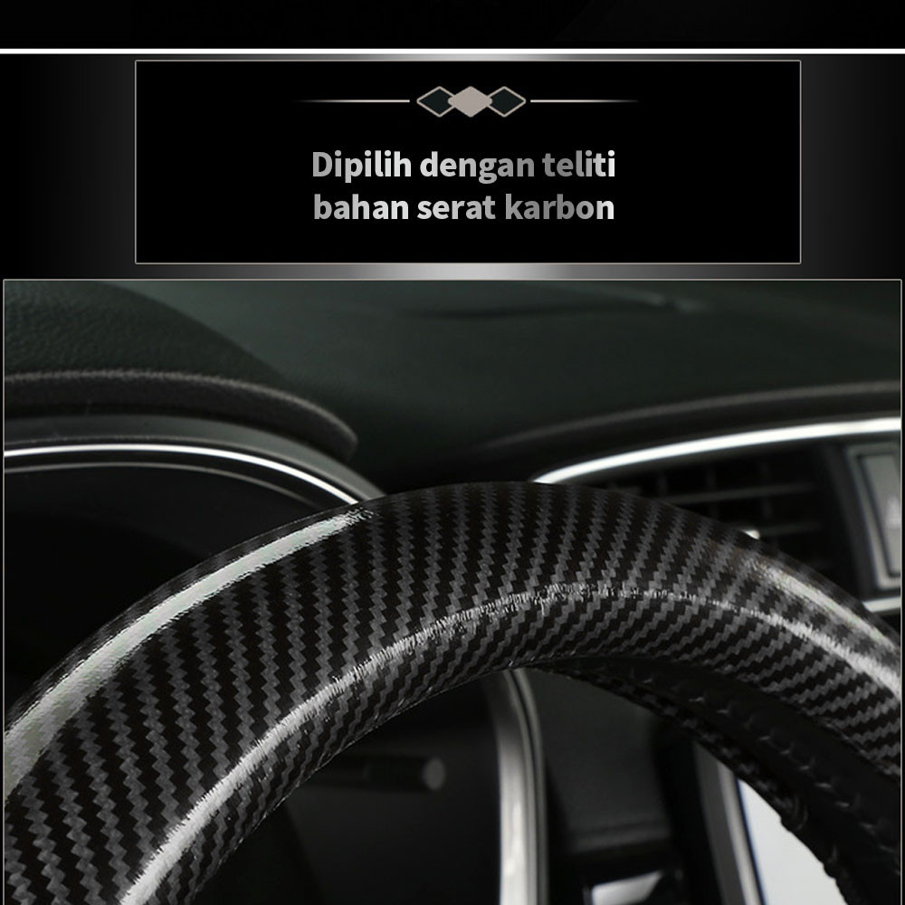 【】Sarung Setir Mobil Universal 38 Cm Stir Car Cover Sleeve Steering Wheel Carbon Karbon Sport Kulit Emboss
