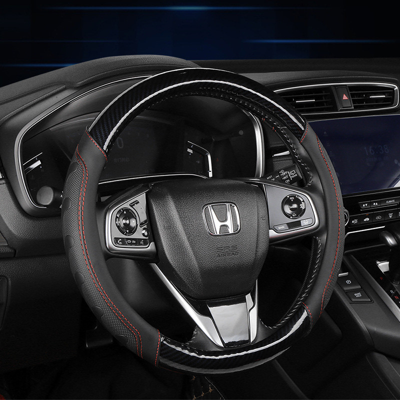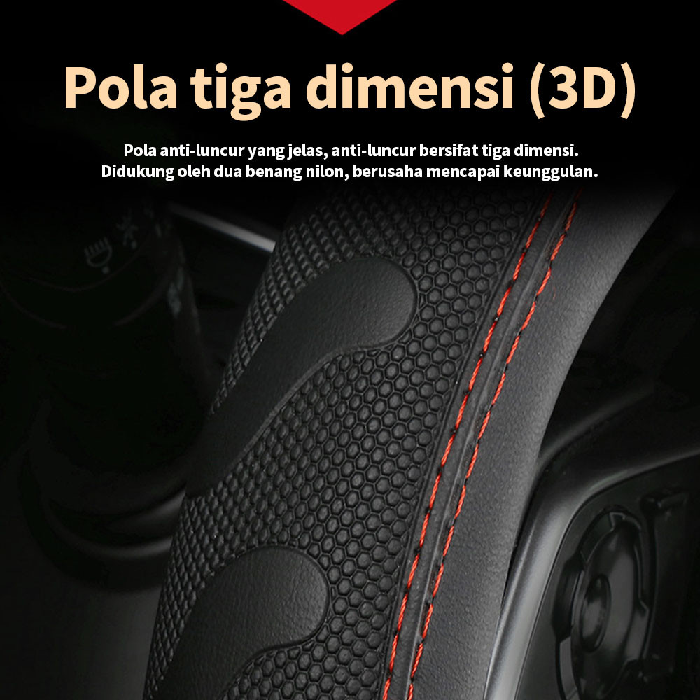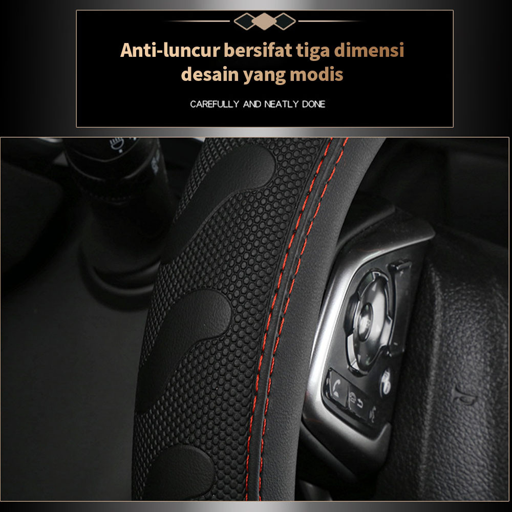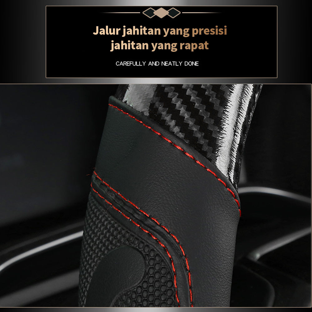 【】Sarung Setir Mobil Universal 38 Cm Stir Car Cover Sleeve Steering Wheel Carbon Karbon Sport Kulit Emboss