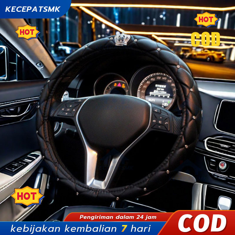 Sarung Setir Mobil Kulit Desain Berlian Angsa Romantis Anti Slip Universal / Sarung Stir Mobil Kulit Polos Berlian 38cm