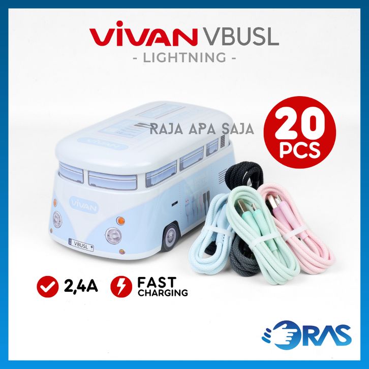 Kabel Data Charger IP Lightning Isi 20 10 Pcs 2,4A Fast Charging Casan Carger Lighting Grosir Toples Kaleng Vivan VBUSL
