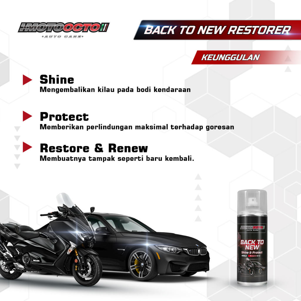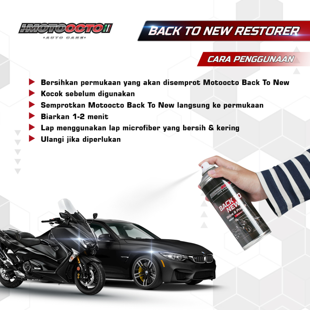 Motoocto Restorer Pengkilap dan Penghitam Body Kendaraan Motor dan Mobil