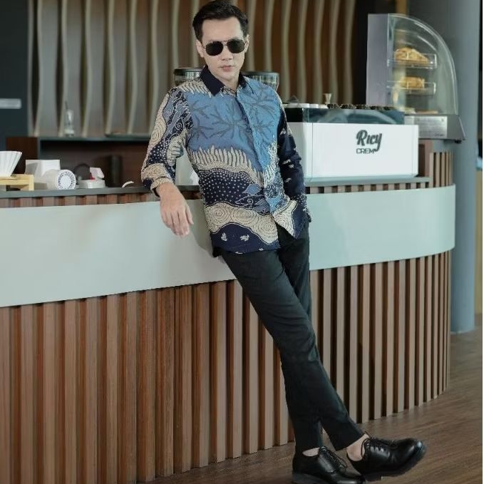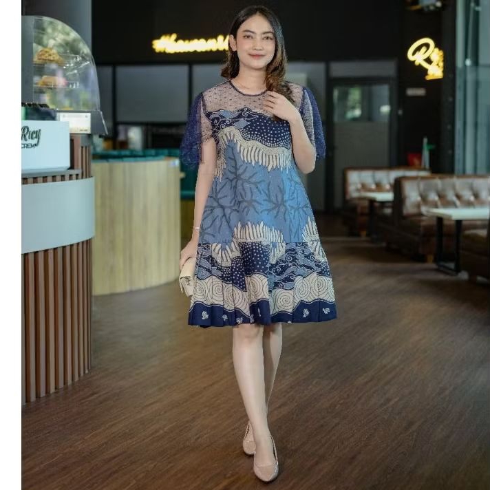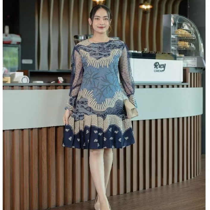 Batik Pasangan Couple Dewasa Motif DEFINA Pakai Lapis Trikot Atasan Batik Hem Dres