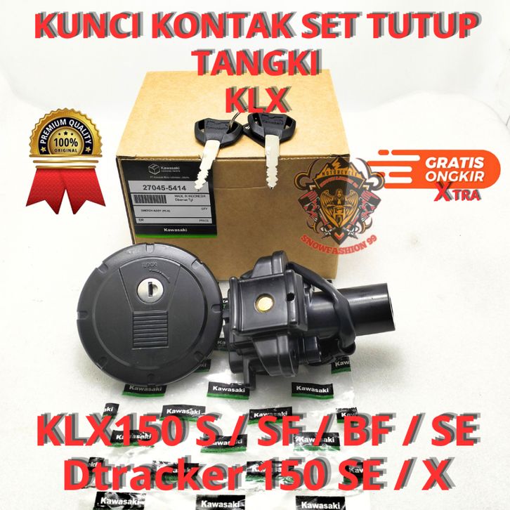 TERLARIS KUNCI KONTAK SET TUTUP TANGKI KAWASAKI KLX150 DTRACKER 150 ASLI ORIGINAL KAWASAKI