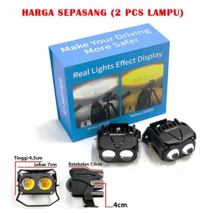 TERLARIS LAMPU PROJIE 2 MATA LED FOGLAMP TEMBAK SOROT DUAL MINI PROJIE U SERIES DUA WARNA