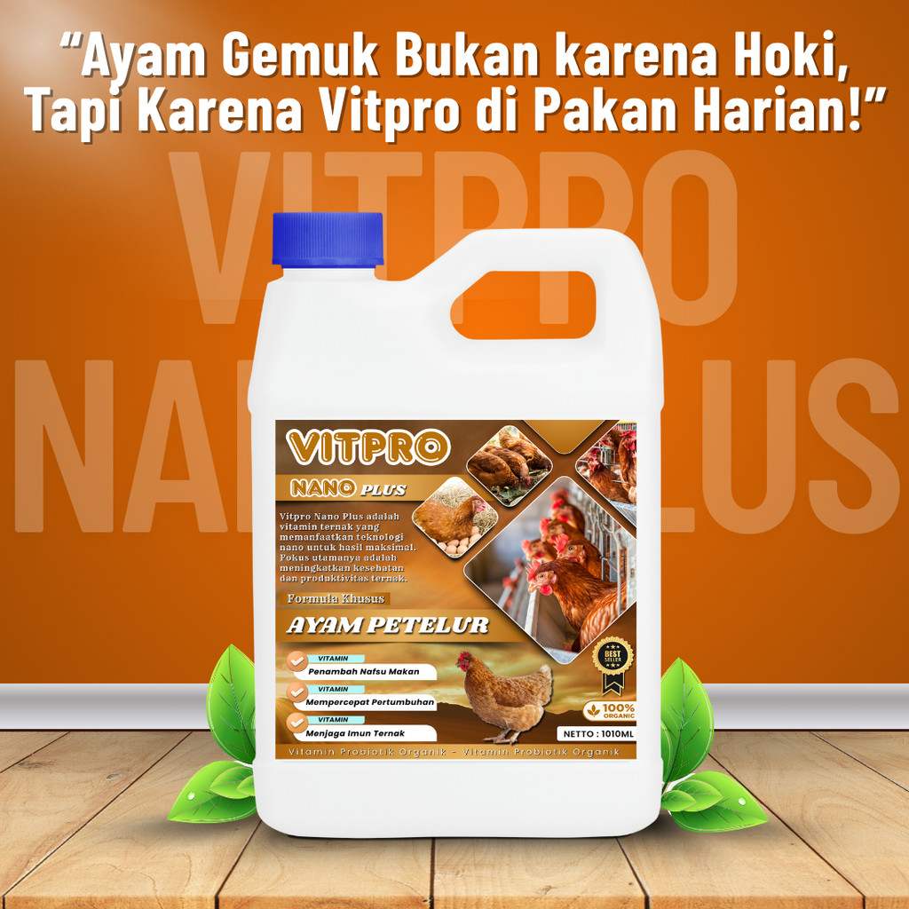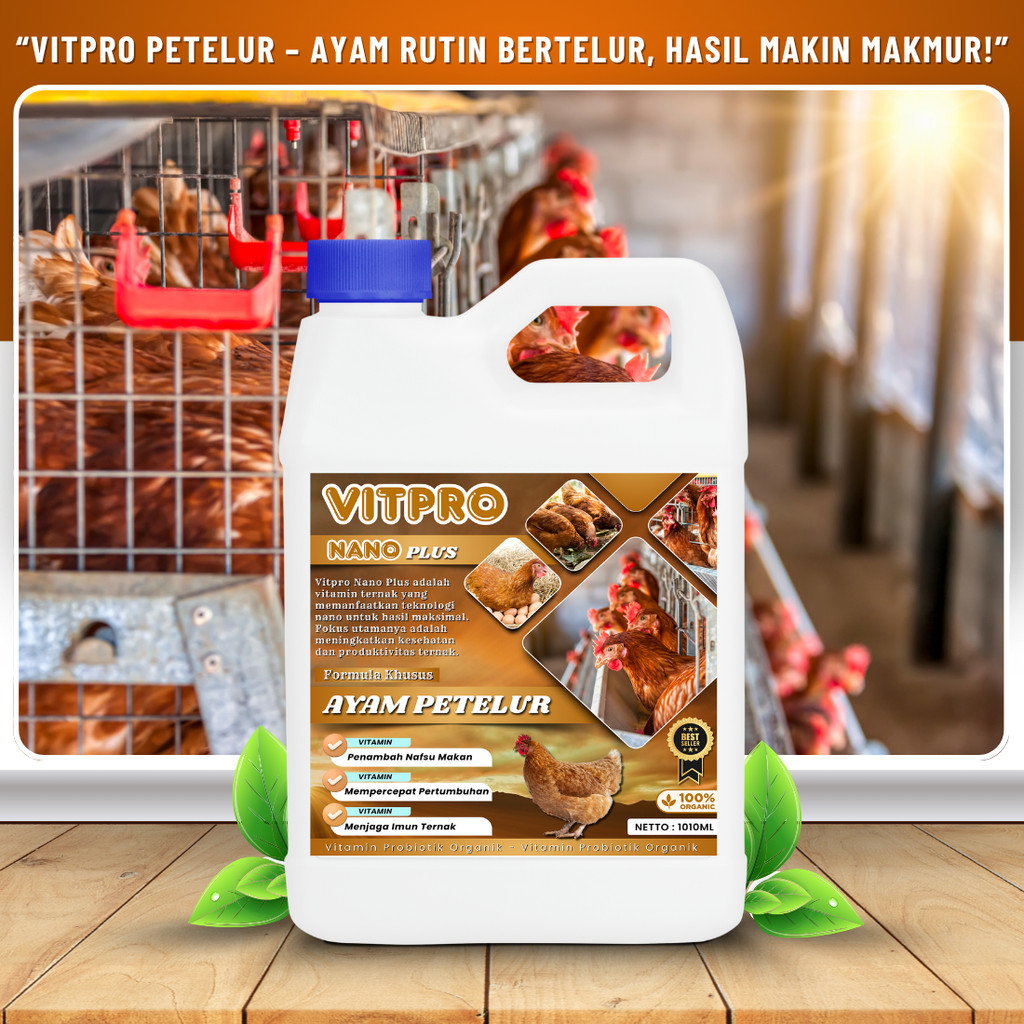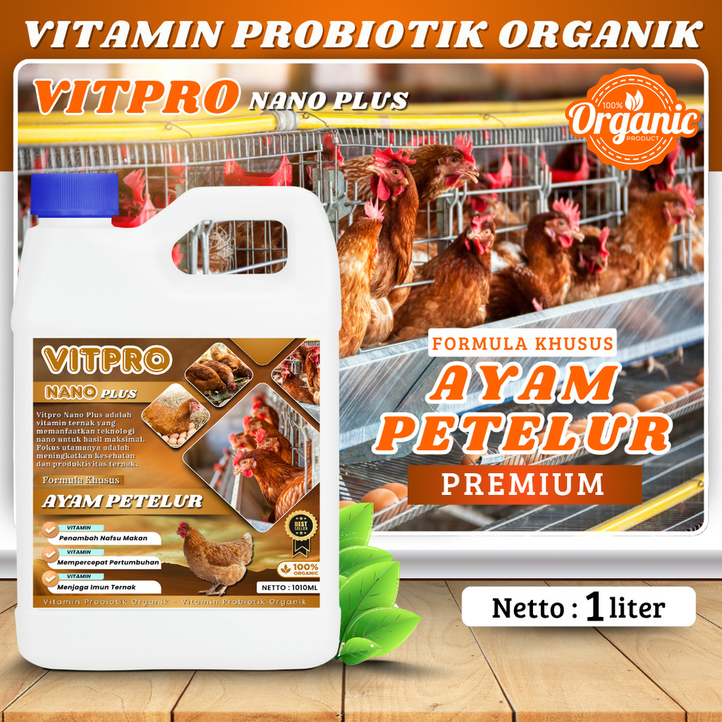 Vitpro Nano Plus Ayam Petelur – Vitamin Probiotik Penambah Produksi Telur, Nafsu Makan, Ayam Sehat Bertelur Rutin 1 lite