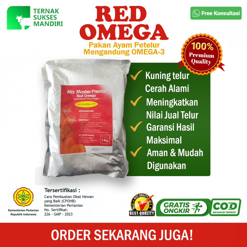 Mix Master Premix RED OMEGA – Pakan Ayam Petelur, Kuning Telur Lebih Cerah & Kaya OMEGA 3
