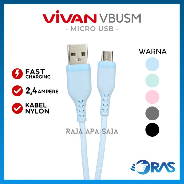 Kabel Data Charger Vivan Micro USB 2,4A Fast Charging Casan Carger Mikro HP Android VBUSM