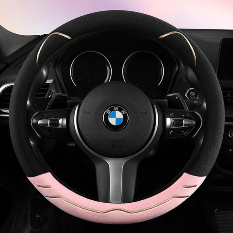 【】Cover Stir Mobil 38CM Universal Sarung Setir Mobil Serat 3D Carbon Karbon Kulit Elastis Cover Steer Kulit Domba Asli+C