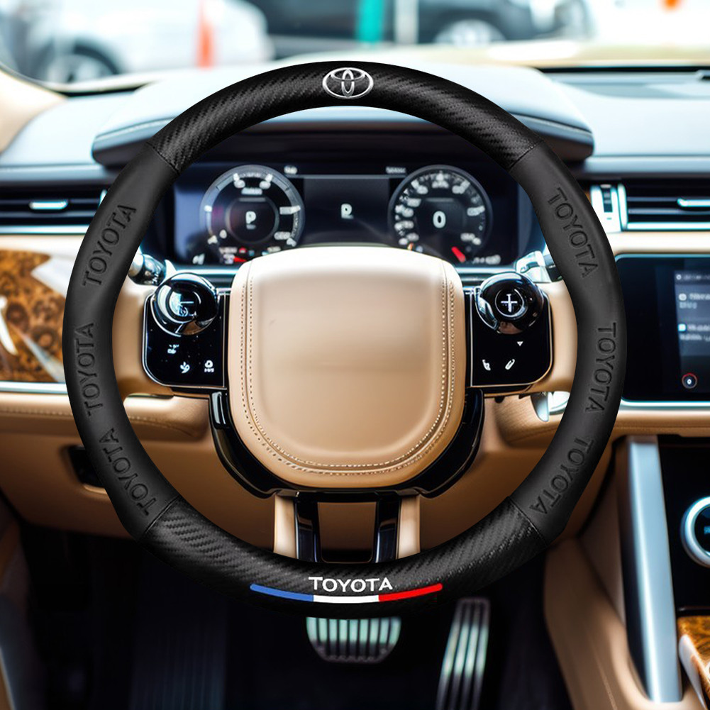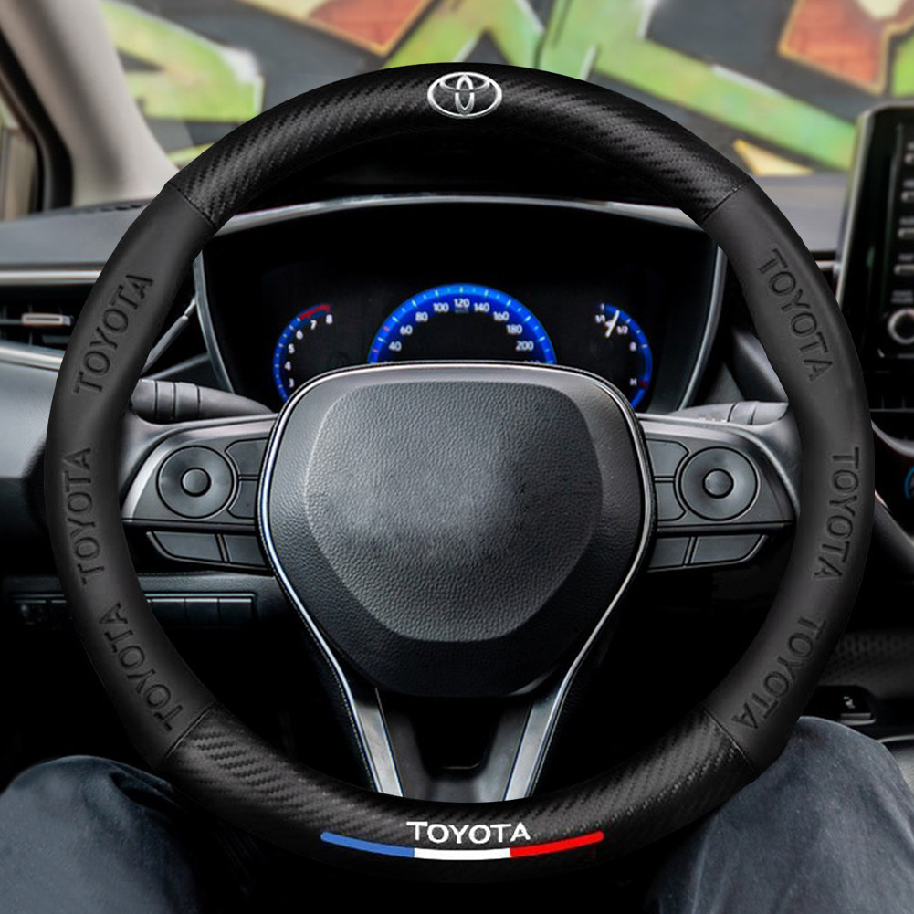 Sarung Stir Mobil Logo Brand Cover Steer Carbon Karbon Sport Kulit Domba Asli Toyota Premium Quality Emblem