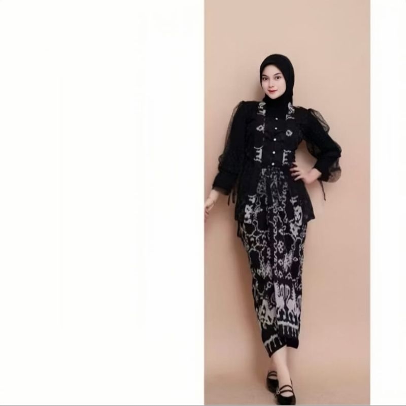 BAJU COUPLE TENUN KEBAYA PUSPA BLACK SET KEMEJA PRIA - BAJU SET PASANGAN - SET COUPLE PREWEDD
