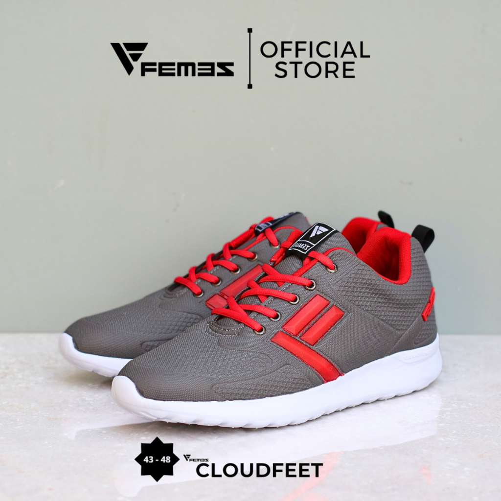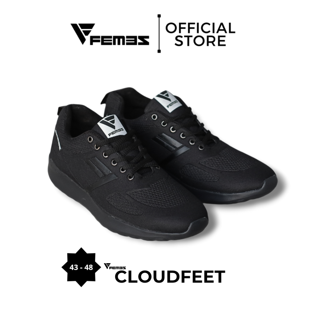 Femez Cloudfeet Sepatu Casual Pria Ukuran Big Size Jumbo 43-48 Abu Hitam Sport Olahraga Sepatu Polos