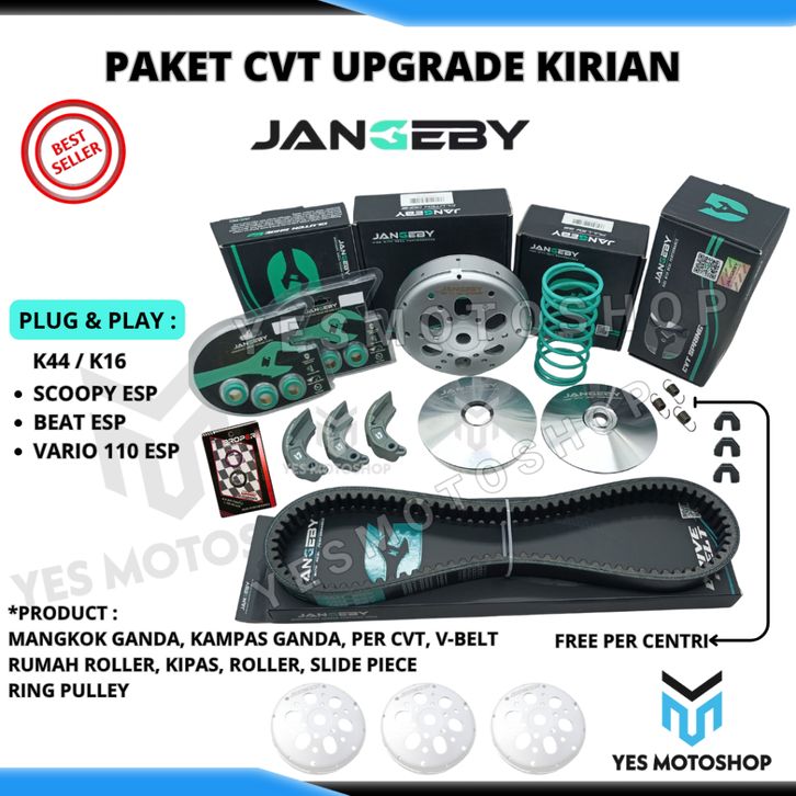 TERLARIS PAKET UPGRADE CVT JANGEBY BEAT FI ESP SCOOPY FI ESP VARIO 110 FI ESP K44 K16 PULLEY MANGKOK V-BELT