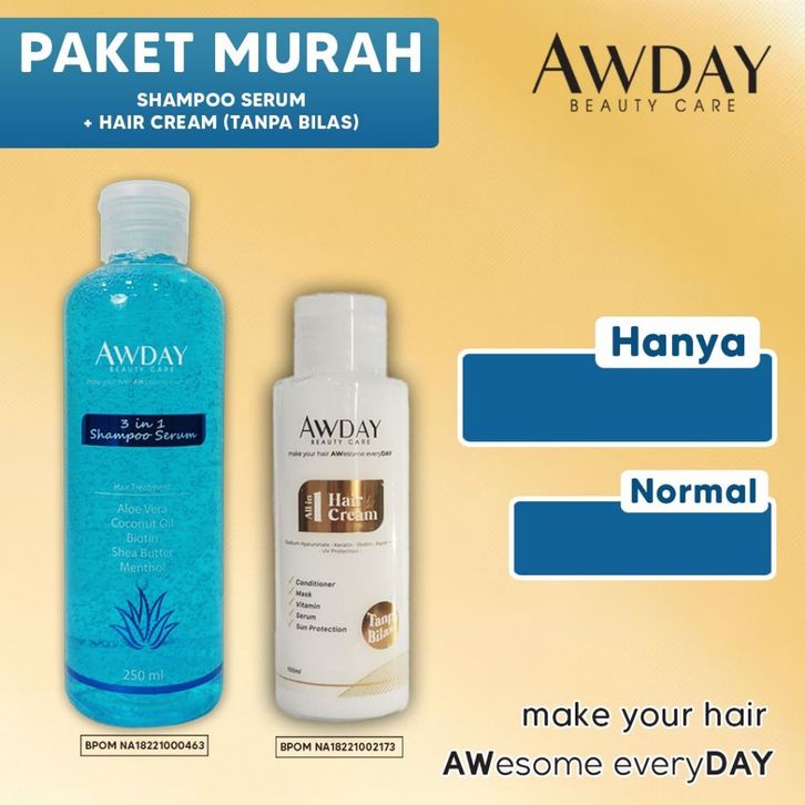 PAKET SHAMPOO TREATMENT AWDAY 3in1 250ML & CONDITIONER 100ML