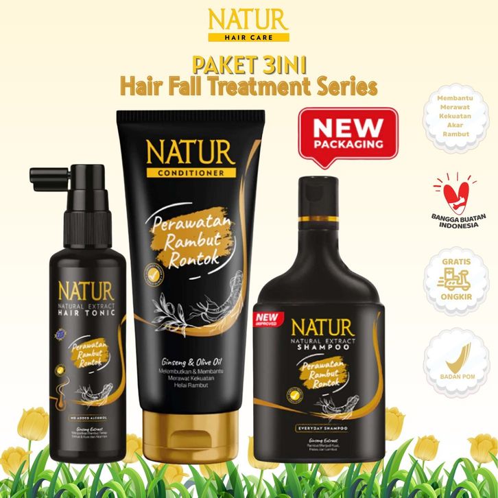 NATUR Ginseng Paket 3PCS Rambut Rontok Shampoo 140ml Hair Tonic 90ml Conditioner 160ml