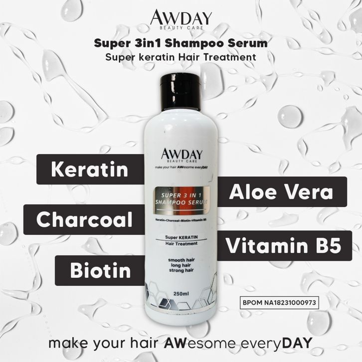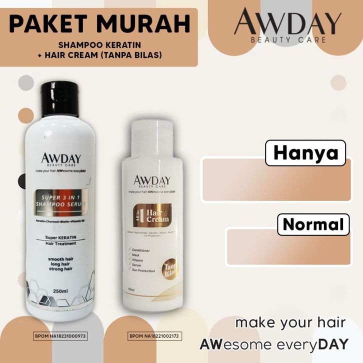 AWDAY BUNDLING PAKET SUPER HEMAT 3in1 Shampoo SUPER KERATIN dan Hair Cream All in 1 Conditioner