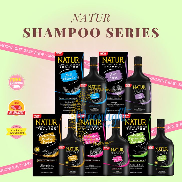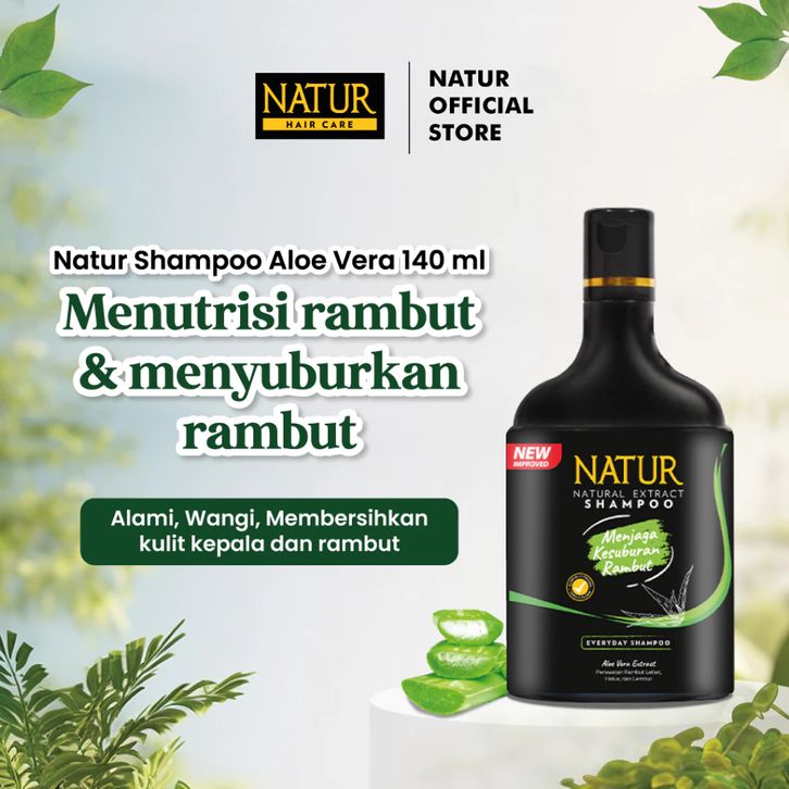 Natur Hair Shampoo 80ml -140ml - 270ml l Aloe Vera BPOM Ginseng Extract Olive Oil Moa Tea Tree Oil