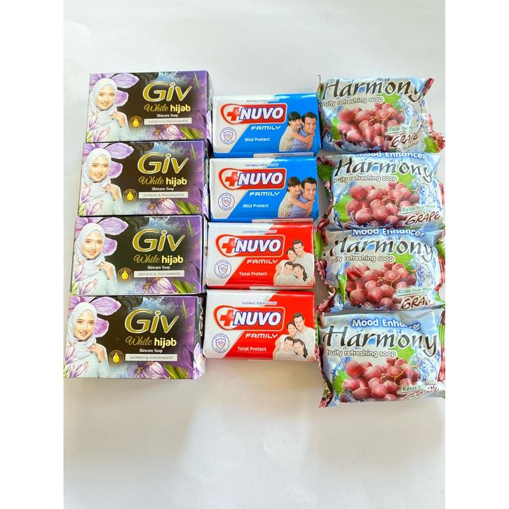 Paket Hemat Sabun Mandi 12Pcs Giv, Nuvo, Harmony