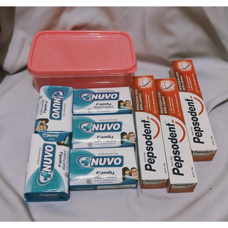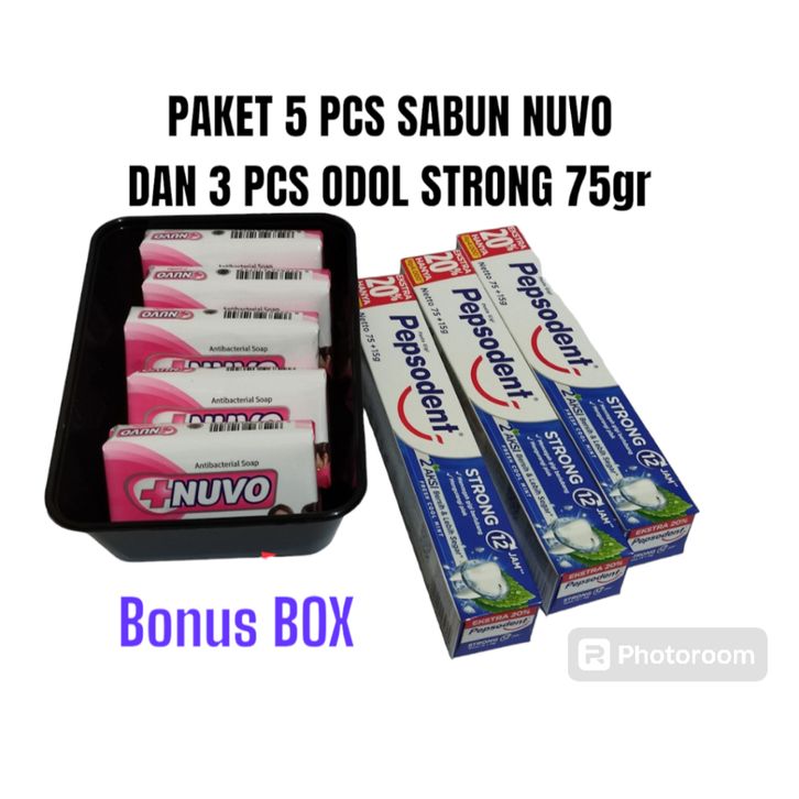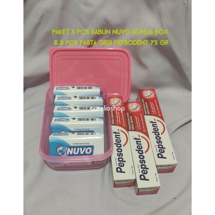 PAKET 5 PCS SABUN NUVO GRATIS BOX DAN 3 PEPSODENT 75 GR