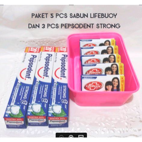 PAKET 5 PCS SABUN LIFEBUOY BONUS BOX DAN 3 PCS ODOL PEPSODENT strong 75gr
