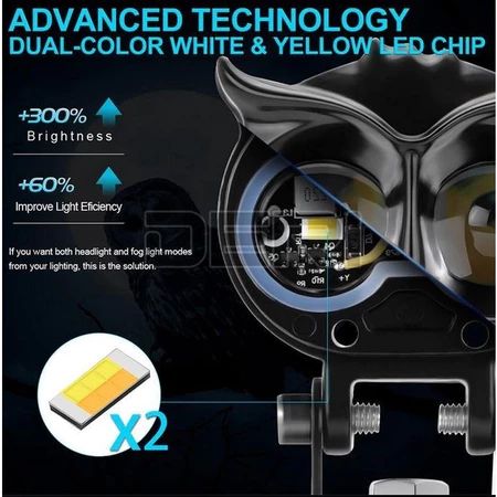 PROMO Lampu Tembak Motor Mobil LED 2 Warna burung hantu lampu kuning dan putih Mobil untuk Aksesori Lampu Sorot