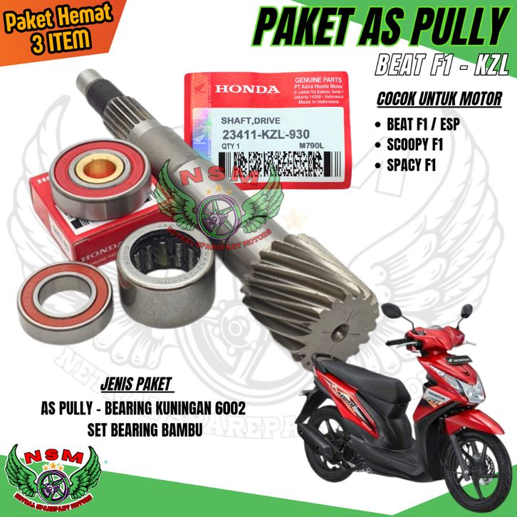 PAKET LENGKAP 5 JENIS KZL AS PULLY BEAT F1 + BEARING CVT 6002+BEARING PULLY + LAHAR 6204 + SEAL AS PULLY BEAT F1 SCOOPY