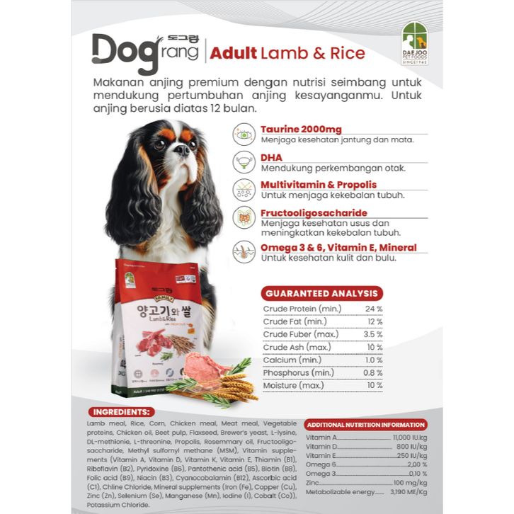 Dograng Adult Dog Lamb and Rice Korea 2kg Freshpack
