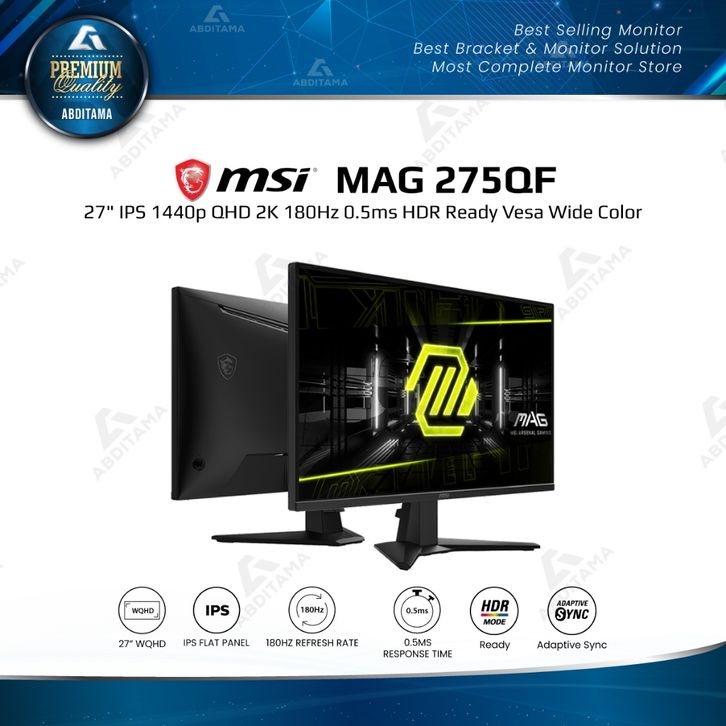 Monitor LED MSI MAG275QF 27" Rapid IPS 1440p QHD 2K 180Hz 0.5ms HDMI x2 DP x1 HDR Ready Vesa Wide Color Gamut