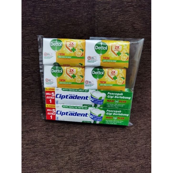 paket hemat sabun dettol 4pcs 60gr dan 2 pastagi ciptadent 75gr