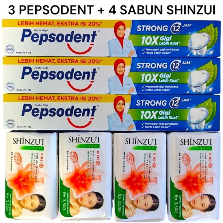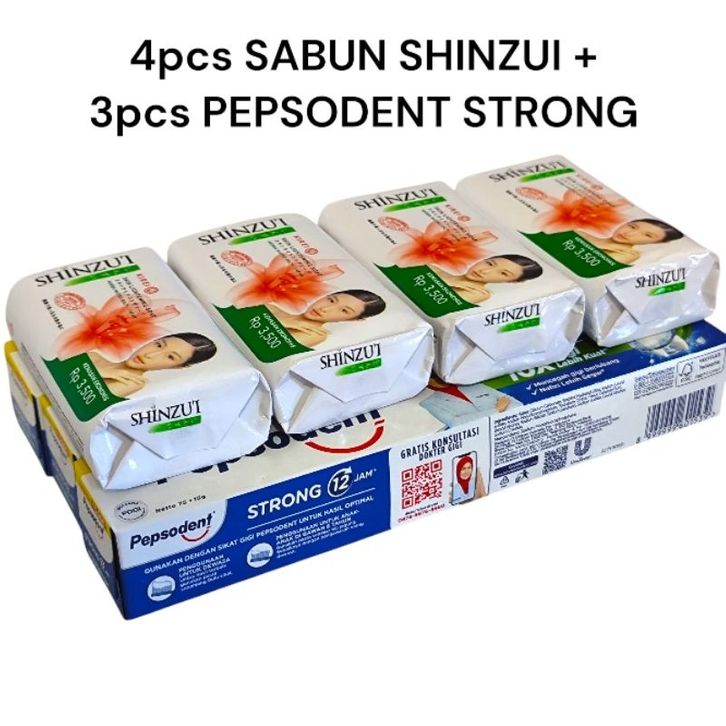 PAKET HEMAT SABUN MANDI 3pcs PEPSODENT STRONG 75+15gram + 4pcs SABUN SHINZUI