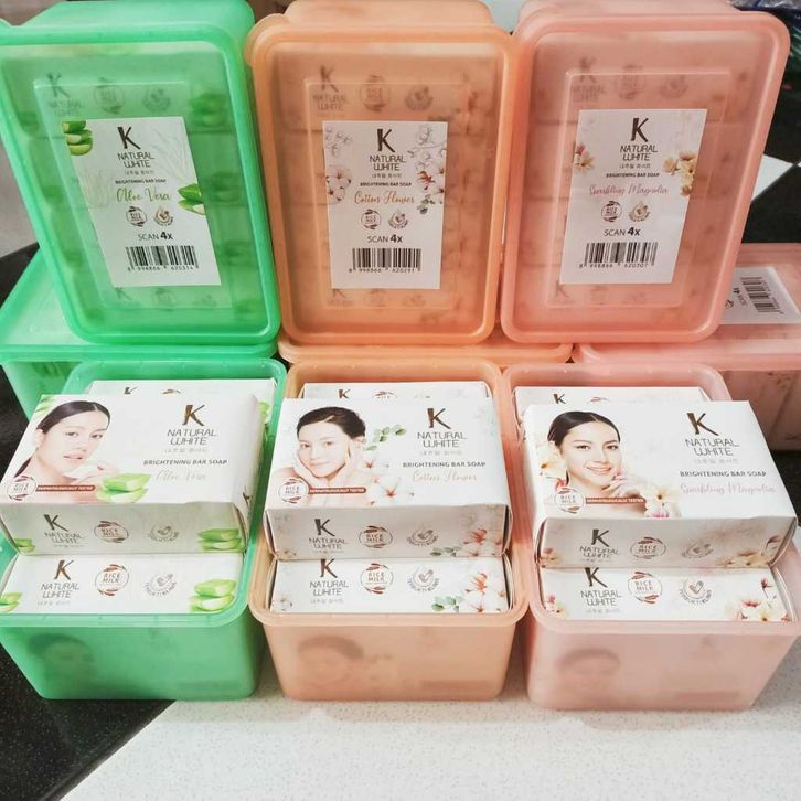 K Natural BOX Sabun Mandi Batang Bar Soap 85gr x 4pcs Bonus Tepak