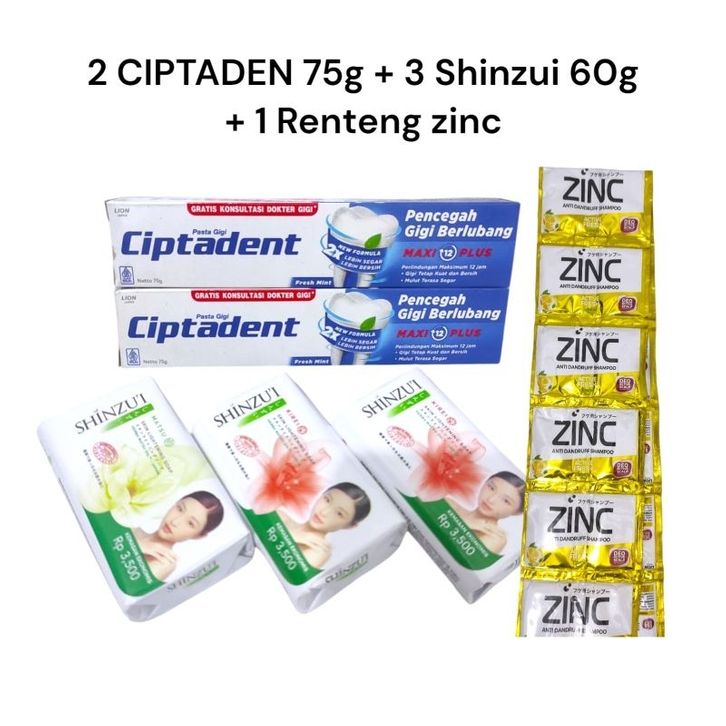 PAKET HEMAT 3 SABUN SHINZUI + 1 RENTENG SHAMPO ZINC + 2 CIPTADENT