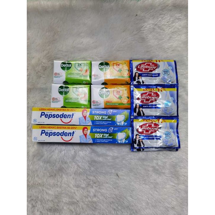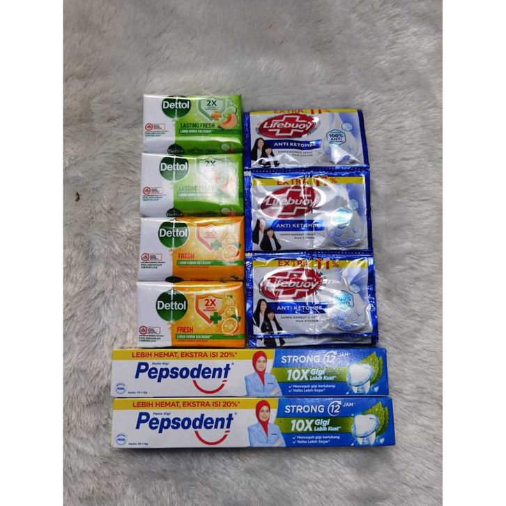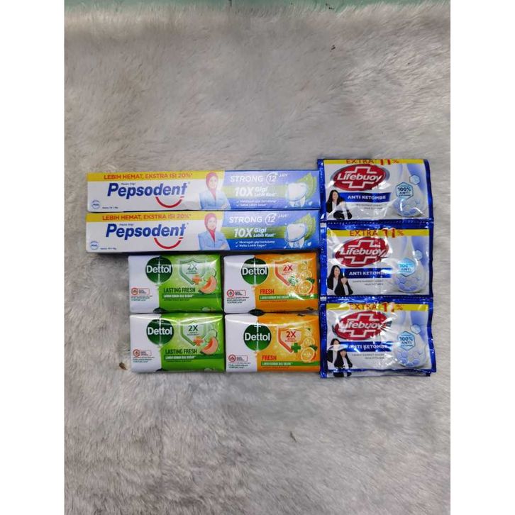2 PCS PEPSODENT STRONG 90GRAM + 4 PCS SABUN DETTOL 60GRAM + 24SACHET SHAMPOO LIFEBOUY